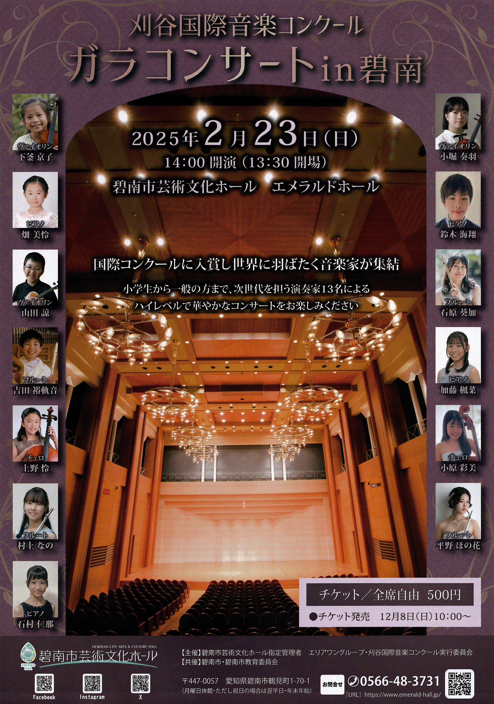 「刈谷国際音楽コンクール ガラコンサートin 碧南」を2025年2月23日(日) 14:00から碧南市芸術文化ホール